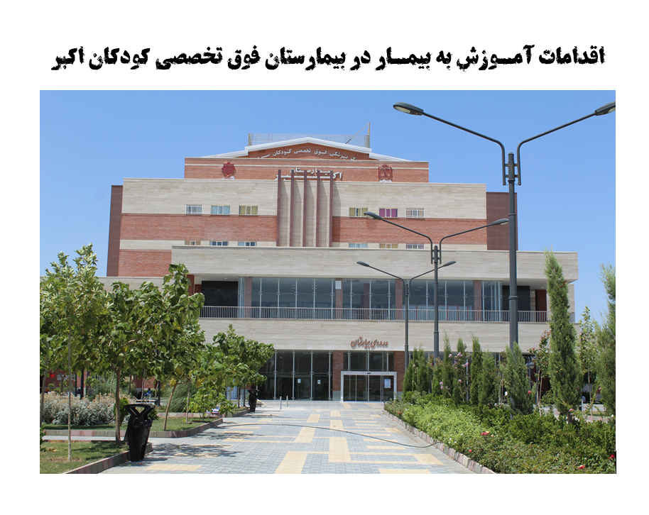 نشانی:درمانگاه بیمارستان فوق تخصصی کودکان اکبر، کلینیک پرستاری آموزش سلامت همه روزه به جزء ایام تعطیل از ساعت 8 الی 12 ارائه کلیه خدمات خودمراقبتی شامل مشاوره پرستاری و آموزش های خودمراقبتی، تغذیه کودک و آموزش شیردهی به بیماران و همراهیان تماس: 31891 - 051 داخلی 172