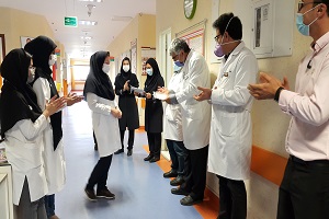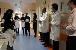 مبنی بر رضایت از پاسخگویی و رفتار شایسته پرسنل بخش عفونی و گوارش طی مراسمی با حضور ریاست محترم بخش جناب آقای دکتر کیانی، جناب آقای دکتر اعلمی و هیئت رئیسه این مرکز با اهدای جوایز نقدی و لوح تقدیر از پرسنل خدوم این بخش قدردانی شد. |