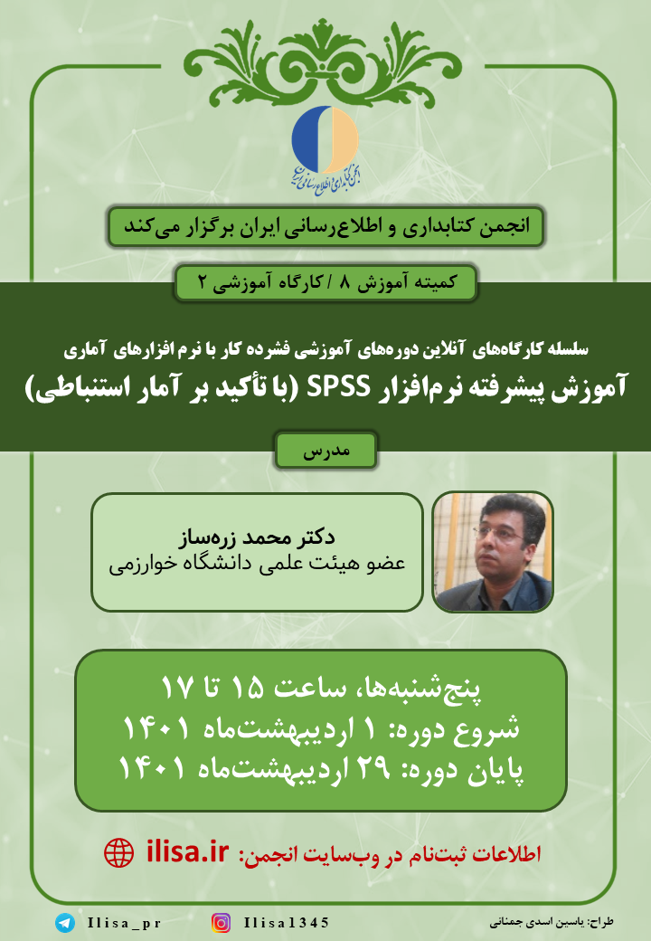 دوره آموزش پیشرفته نرم افزار spss برای همه رشتههایی که با این نرمافزار به نوعی سروکار دارند، مفید و کاربردی است. گواهی شرکت در دوره برای شرکتکنندگان از طرف انجمن کتابداری و اطلاعرسانی ایران صادر خواهد شد.
