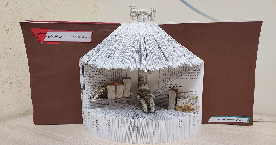 کتاب های قدیمی و سنگین خود دنیایی سحر آمیز هستند. وقتی یکی از آن ها را بر میداری و غبار روی جلد آن را پاک میکنی انگار اسم رمز کتاب را گفتی وقدم به دنیای اسرار آمیز آن ها گذاشتی. خانم ساجده اکبر زاده کتابدار هنرمند بیمارستان قائم به کمک جادوی هنر خود زندگی دوباره به این کتاب ها می بخشد. به کار ایشان (هنر کتاب یا "بوک آرت: book art ") گفته می شود. ایشان این دو اثر زیبا را به کتابخانه بیمارستان اکبر اهدا کردند. |