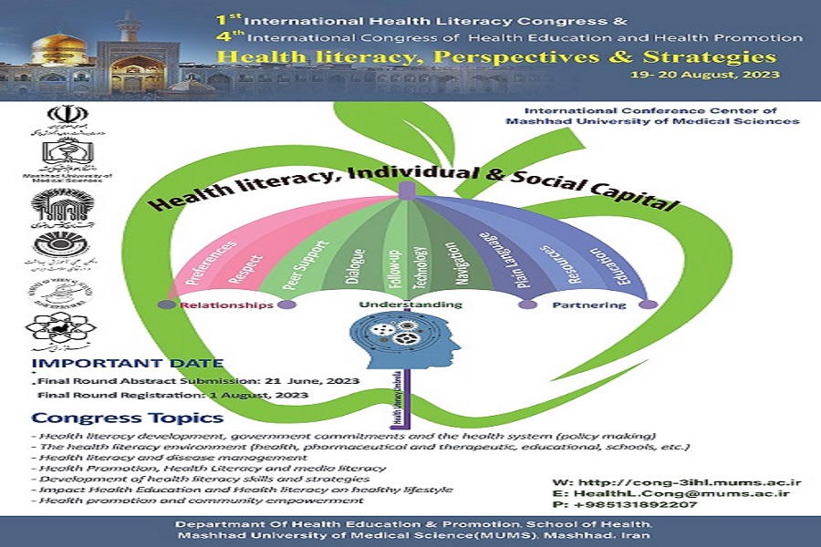 نخستین کنگره بین المللی سواد سلامت و چهارمین کنگره بین المللی آموزش بهداشت و ارتقای سلامت مرداد ماه امسال در دانشگاه علوم پزشکی مشهد برگزار می شود. به گزارش وب دا، این کنگره ٢٨ و ٢٩ مرداد در محورهای توسعه سواد سلامت، تعهد دولت و نظام سلامت (سیاست گذاری)،محیط های ارتقا دهنده سواد سلامت (بهداشتی، دارویی و درمانی، آموزشی، مدارس و...)،سواد سلامت و مدیریت بیماری ها،سواد سلامت و رسانه،توسعه مهارت ها و راهبردهای سواد سلامت،تاثیر آموزش بهداشت و سواد سلامت بر سبک زندگی سالم و سواد سلامت و توانمندسازی جامعه برگزار می شود. |
