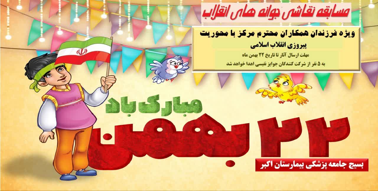 مقام معظم رهبری: دهه فجر، دهه تجدید قوای نیروهای انقلابی با یادها و خاطره های پُرشکوه آن روزهاست؛ دهه تجدید عهد و میثاق ملت ما با انقلاب است؛ دهه گرامیداشت بزرگترین معجزه الهی در این روزگارهاست. این روزها، روزهایی است که در تاریخ عمر ملت ها، شبیه آن بندرت پیش می آید. مسئول روابط عمومی بیمارستان فوق تخصصی کودکان اکبردر گفتگو با واحد وب دا گفت: رمز پیروزی انقلاب انگیزه الهی و وحدت است و این دو از موضوعاتی است که مقام معظم رهبری و امام خمینی (رحمه الله علیه) به آن تاکید دارند. سید رضا ثریای اظهار کرد: هر ساله در طول دهه فجر مراسم و یادبودهای زیادی توسط مردم انقلابی انجام میگیرد. همچنین در سازمانها، ادارات دولتی اقدام به برگزاری سمینارها و همایشها میشود.ایشان درادامه افزود: به همین مناسبت به همت بسیج جامعه پزشکی مرکز با همکاری واحد روابط عمومی به مناسبت فرارسیدن ایام الله دهه فجر "مسابقه نقاشی جوانه های انقلاب" ویژه فرزندان همکاران محترم مرکز با محوریت "انقلاب اسلامی و سردار شهید سليماني" برگزار میکند. به 5 نفر از شرکت کنندگان جوائز نفیسی اهدا می گردد.