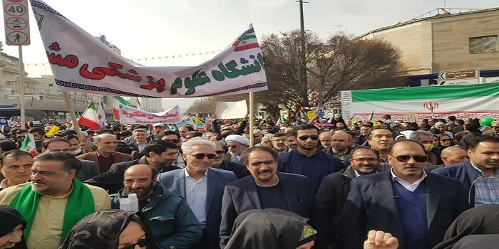 دانشگاهیان دانشگاه علوم پزشکی مشهد با حضور در راهپیمایی ۲۲ بهمن "سالروز چهل و پنجمین پیروزی شکوهمند انقلاب اسلامی ایران" بار دیگر پشتیبانی همه جانبه خود را از ارزش های انقلاب اسلامی اعلام کردند. به گزارش وب دا؛ خانواده بزرگ دانشگاه علوم پزشکی مشهد همراه با سایر هموطنان با حضور در راهپیمایی ۲۲ بهمن، چهل و پنجمین سالگرد پیروزی انقلاب اسلامی را گرامی داشتند و فریاد "مرگ بر آمریکا" و "مرگ بر اسرائیل" سر دادند و نشان دادند که هیچ کشوری نمی تواند برای سرنوشت این ملت شریف و همیشه در صحنه تعیین تکلیف کند. رئیس،اعضای هیات رئیسه، مسئولان، کارکنان، اعضای هیات علمی و دانشجویان دانشگاه علوم پزشکی مشهد هم گام با ملت شریف ایران باعزمی استوار و مشتهایی گره کرده در راهپیمایی ۲۲ بهمن،حضوری پرشور و گسترده داشتند و باز هم حیرانی برای جهانی ماند که برای ناامیدی مردم هرچه در توان داشتند در استودیوهای رنگارنگ و میزهای تحریم قرار دادند اما استواری مردم و ایستادگی آنان، نقشههای بدخواهان را باطل و رؤیاهایشان را کابوس کرد. |